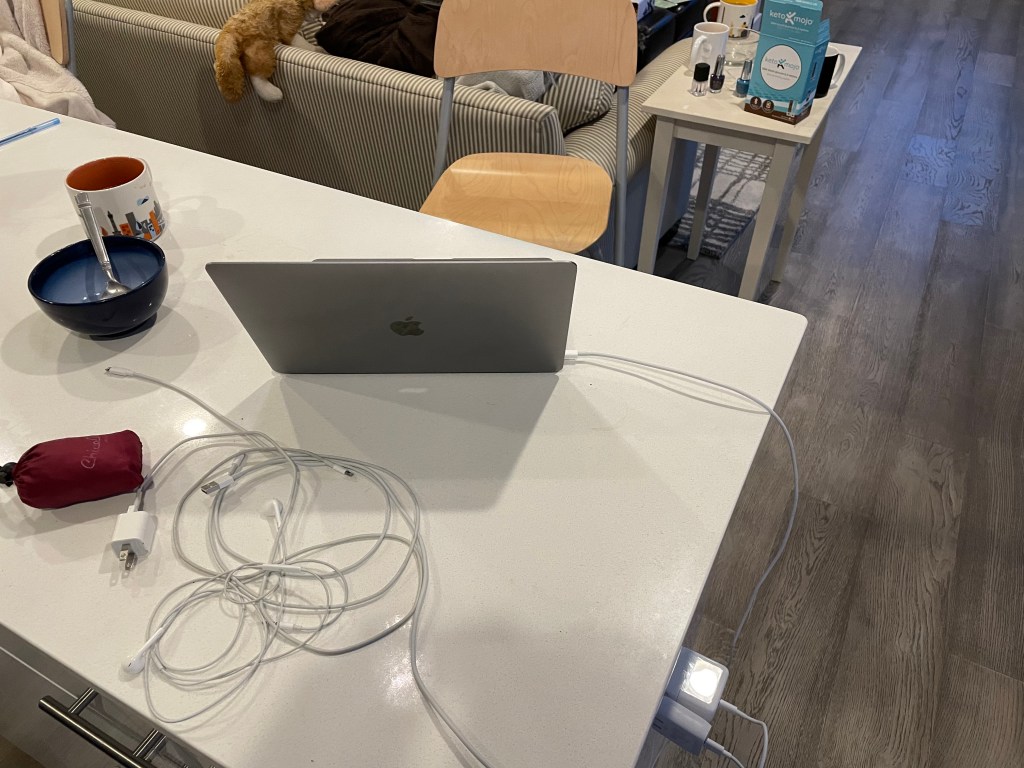 In the days before COVID, I would generally head out to catch the train to work around 8:15. Now, however, since my commute essentially involves going downstairs to our extra bedroom, my coffee time has been extended to 9.